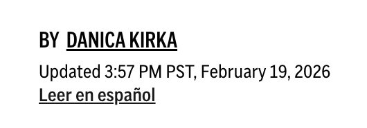 Screenshot Black font on a white background reads: “By Danica Kirka” and below that: “Updated 3:57pm PST, February 19, 2026”.
